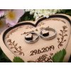 Srdíčko o rozměru 14 x 13 cm s vygravírovanými jmény snoubenců a datem svatby.